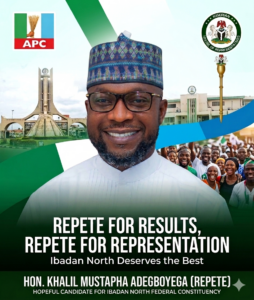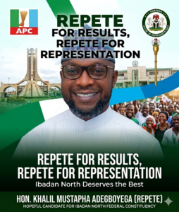 In the evolving political conversation within Ibadan North Federal Constituency, one name continues to resonate across communities, party structures, youth forums, and professional circles — Khalil Mustapha Adegboyega (Repete).